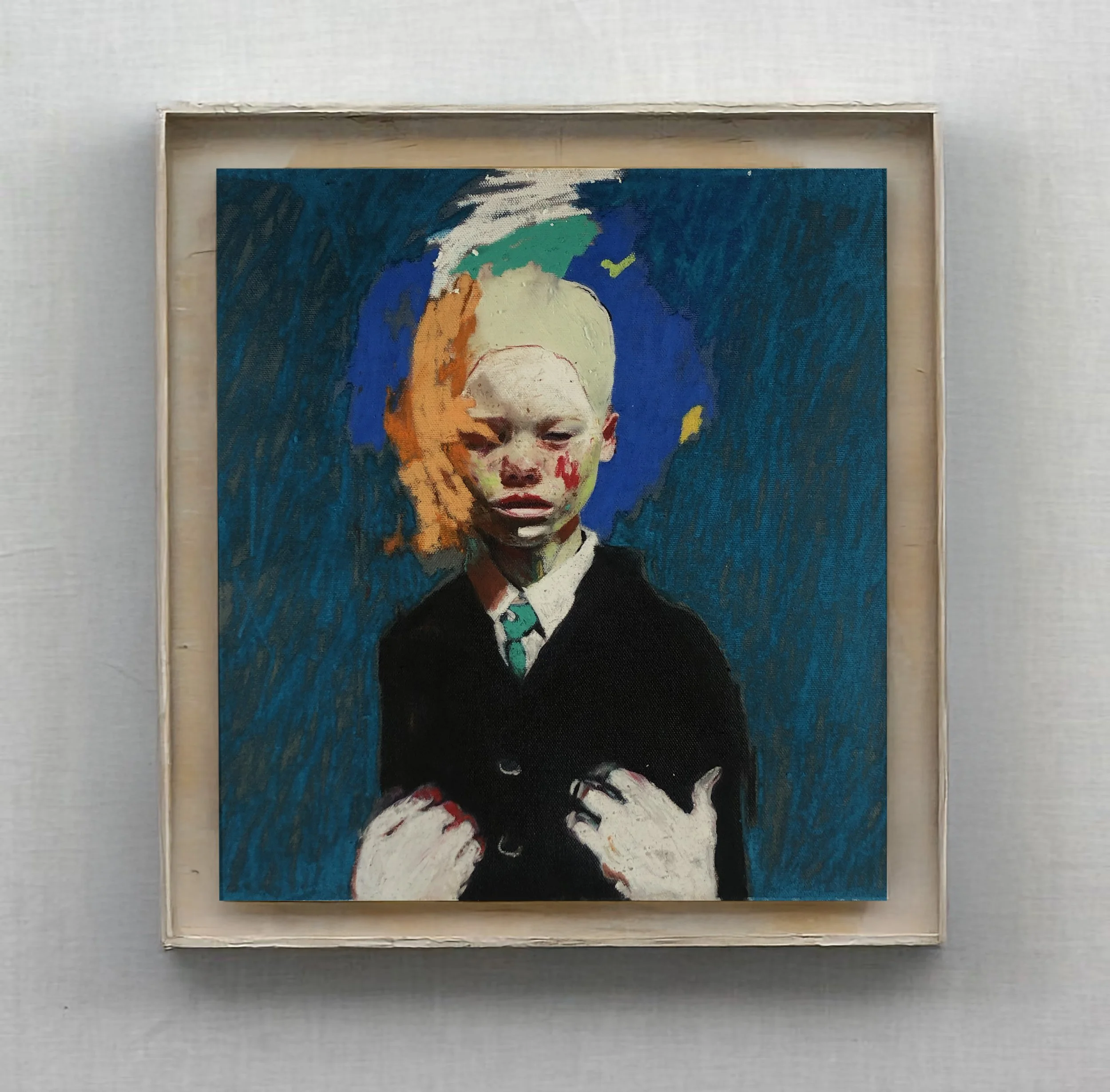 A contemporary portrait of a young person with an expressive background, painted with bold brushstrokes and vivid colors.